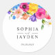 Chic colourful wildflowers wedding monogram classic round sticker