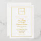 Stylish all season wedding invitation done in white, with real foil accents and text. Bride and groom's monograms decorate a square, at the top of the invitation and a thin double frame surrounds the front side. The back of the invitation is done in white. Personalise all the text fields for your special day. Matching wedding products are available.