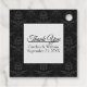 Black and white contemporary wedding favour gift tags done in a black on black floral damask pattern. A white square text area, in the middle of the tag, has black custom text ready to personalise.
