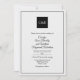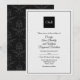 Stylish all seasons wedding invitation done in black and white, with a watercolor paper texture look. Bride and groom's white monograms decorate a black square, at the top of the invitation and a thin black frame surrounds the front side. The back of the invitation is done in a black on black floral damask pattern. Personalise all the text fields for your special day. Matching wedding products are available.