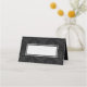 Black and white folded wedding place card done in a black on black floral damask pattern, with a white text area, on the front. Personalise the front of the card by hand for each guest at your reception.