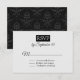 Chic black and white minimalist wedding RSVP card, with the front having a watercolor paper look. The back is done in a black on black floral damask pattern. Personalise all the text for your special day. Matching products are available.