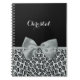 A chic coral and black jaguar print notebook with a girly light red ribbon tied into a cute bow. Personalise this trendy leopard like animal print fashion accessory by adding the name of your teen girl. Flat printed image, not actual bow.