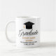 This trendy senior graduation mug gift features chic black typography under a high school or college graduate black cap for the senior class of 2025. Customise with your name and class under the lovely calligraphy for a great graduation keepsake.