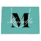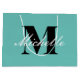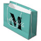 Chic custom monogram large teal blue gift bagwith fancy script typography. Elegant big gift bags for chic presents and party favours. Luxury template design with customisable colours. Great for Birthday, Christmas, Holidays, weddings and other special occasions. Personalise with your own names on the front and back. Big and small sizes available.
