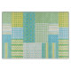 A pretty oblong Cutting Board, with a faux-patchwork pattern of golden daffodils on turquoise, teamed with matching polka dots, check ginghams and stripes, part of the Posh & Painterly 'Spring Sunshine'