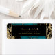 A modern, stylish and glamourous return address label. Black and shiny gold foil paint marble texture with cyan marble stone background.