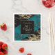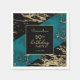 A modern, stylish and glamourous birthday party napkin. Black and shiny gold foil paint marble texture with cyan marble stone background. Personalise and add your party details. Make your milestone birthday an extraordinary event!