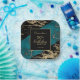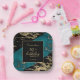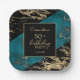 A modern, stylish and glamourous birthday party paper plate. Black and shiny gold foil paint marble texture with cyan marble stone background. Personalise and add your party details. Make your milestone birthday an extraordinary event!