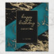 A modern, stylish and glamourous birthday party wine label. Black and shiny gold foil paint marble texture with cyan marble stone background. Personalise and add your party details. Make your milestone birthday an extraordinary event!