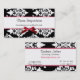 Elegant black and white damask business card, with a red satin looking bow and red border accents decorating the front. Customise this stunning business card for yourself or company by changing the text, text font style, colour, even add and delete fields to your needs.