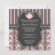 This invitation sets the stage for a chic and girly baby shower that she's sure to love. A sweet silhouette of a delicate teapot with elegant black and pink damask and stripe pattern, all creates a lovely design with a French feel that's fit for an elegant tea party Baby Shower.