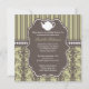 This invitation sets the stage for a chic bridal shower that she's sure to love. A sweet silhouette of a delicate teapot with elegant mocha brown and sage green damask and stripe pattern, all creates a lovely design with a French feel that's fit for an elegant tea party Bridal Shower.