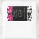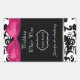 Pretty wedding wine bottle favour stickers done in a black and white damask pattern, on the top and bottom, and a solid black, in the middle. A chic pink satin looking bow accents the top of the sticker. Personalise the white text for your wedding reception.