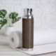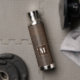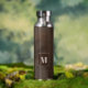 Insulated water bottle featuring a chic dark brown faux leather design with a rectangular shape (optional) and your custom monogram. Great as a personal gift for him.
