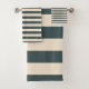 Chic Dark Green Off-White Striped pattern Bath Towel Set