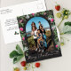 Chic Dark Grey Pink Greenery Arch Merry Christmas Postcard