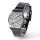 Enhance your outfit with this elegant wristwatch, which features a stunning dark teal blue, white, blush pink, and gold marble wave art pattern. This watch makes an ideal gift for yourself or someone special, and it serves as a beautiful addition to your everyday fashion.