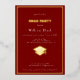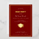 Celebrate in sophisticated style with this customisable graduation party invitation featuring a deep red background and golden real foil elements. The invitation is designed with elegance and simplicity in mind, showcasing: