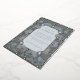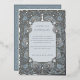 This elegant wedding thank you card features a luxurious dusty blue backdrop adorned with intricate silver foil detailing in a classic baroque design. The front of the card expresses heartfelt gratitude, framed by beautiful floral and scroll patterns that add a touch of timeless sophistication. The reverse side highlights the couple's initials, set within the same ornate design. With its stunning combination of cool blue hues and shimmering silver foil accents, this card is perfect for couples looking to send a classy and refined thank you note to their guests after their big day.