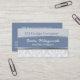 Chic modern business card done in a layered looks, with a pale dusky blue, at the top and pale blue and white damask pattern, across the bottom. The middle has a band of blue with silver tone edges. Personalise the custom text, on the front and back of the card, to suit your business needs. Great for any profession or business.