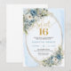 Chic Dusty Blue Flowers Sweet Sixteen Birthday Invitation