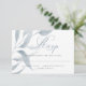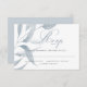 Wedding RSVP Card | Dusty blue on white. Elegant calligraphy spells out RSVP with details in a modern contemporary font. The reverse is done in a complimentary dusty blue. Design created for the BarefootBride™ by © WhimsicalArtwork™ Customise text, font style, colour and size. We created this template is to make it easy for you to personalise with your own information. This is part of our Dusty Blue Foliage Ivory Peonies Wedding Stationery Suite with matching wedding, baby shower and other event stationery.