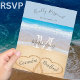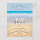 Chic Dusty Blue Hearts Sand Beach Wedding RSVP Postcard