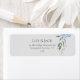 Lovely stylish blue hydrangea floral return address label set in a beige sand background. Chic and youthful. The label includes the names of the couple and the return /RSVP address to be personalised.