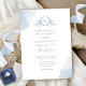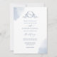Chic Dusty Blue Watercolor Stains Monogram Wedding Invitation