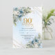 Chic Dusty Blue White Flowers 90th Birthday Invite