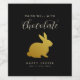 Simple and chic "Pairs well with chocolate" Easter personalised wine label featuring modern typography and a gold bunny silhouette. Minimalist, elegant and stylish. Customise with short greeting and name. Perfect for Easter gift or Easter party favour.