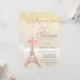 Chic Eiffel Tower Bow Drips Gold Quinceañera Invitation