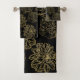 Chic Elegant Black Gold Line Drawn Flower Pattern Bath Towel Set