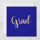 This elegant design features large centred "Grad" text written in festive, elegant warm yellow script. The background is deep, rich royal blue. The text can be personalised.