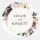 Chic Elegant Custom Pink Purple Floral Wedding Classic Round Sticker