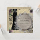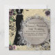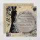 A chic black dress on a gold glittery backdrop with purple flowers with decorative swirls combined with a sliver circle with silver flourish where you can customise your event. Stylish girly elegance.