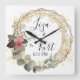 Chic Elegant Floral Wreath Wedding Square Wall Clock
