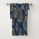 Chic Elegant Navy Blue Gold Fern Leaf Pattern Bath Towel Set