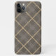 Contemporary faux gold plaid tartan gingham pattern on a dark taupe brown background. Beautiful, modern, and cool cover for the trend-savvy and art-loving hip trendsetter, artsy motif lover who wants to protect their phone from dust and dirt, wear and tear. This design is available for iPhone 6, 7, and 8 Plus, 10 or X, XR, XS, 11, 12, 13 Mini, 14, and 15 Pro Max cellphone cases. Show off your style, look fashionable trendy, and feel stylish with a unique design on a mobile device accessory of your choice.