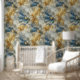 Chic Elegant Swirls in Gold, Silver, Blue, Yellow Wallpaper