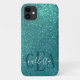 Chic Elegant Teal Blue Sparkly Glitter Monogram Case-Mate iPhone Case