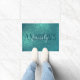 Chic Elegant Teal Blue Sparkly Glitter Monogram Doormat
