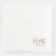 A simple, white, clear and clean wedding design, personalised with Mr. and Mrs. initials and names, with a small faux gold heart of love, and special date... placed in the lower right corner of the napkin