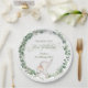 Chic paper plates featuring a cute baby elephant and a soft greenery wreath. For a seamless and coordinated look, explore our range of matching items available in-store. (c) The Happy Cat Studio