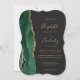 Chic Emerald Green Gold Agate Dark Bracket Wedding Invitation