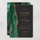 Chic Emerald Green Gold Agate Dark Rounded Wedding Invitation