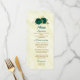 beautiful emerald green flowers and gold leaves elegant wedding menu.