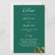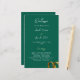 A bold and elegant wedding layout featuring a rich emerald green background with golden wedding rings in the bottom corner. A sophisticated and timeless design, perfect for classic and formal ceremonies.