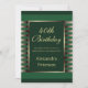 Modern unique emerald green and gold stripes geometric birthday invitation with modern script. Customise the details at the front and back. This invitation displays the age 40 but you can change it to whichever age you like.